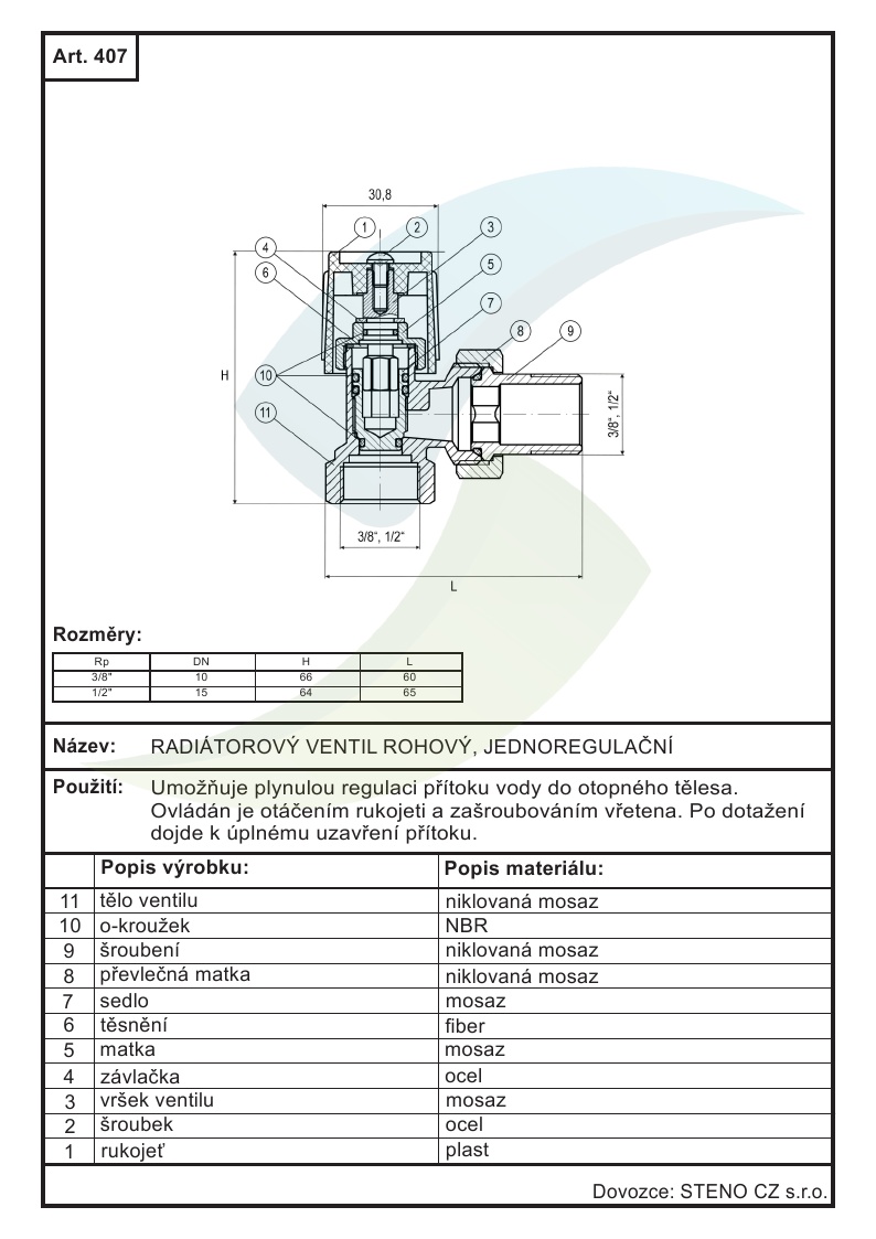 - Radiátorový ventil rohový, jednoregulační 1/2"