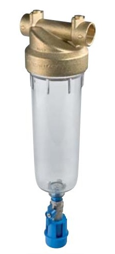 kde je žádán vysoký standard mechanické odolnosti a trvanlivosti. Filtr je tvořen hlavou z mosazi lisované pod tlakem, mosazné matky a nádoby z průhledného plastu.