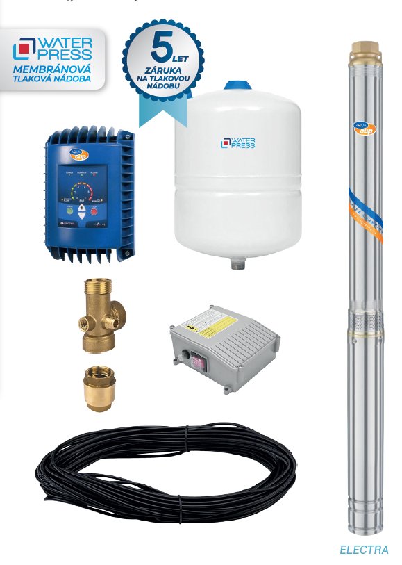 Domácí vodárny s ponorným s 3,5" čerpadlem ELECTRA. Frekvenční měnič chrání čerpadlo před přehřátím, chodem nasucho a zajišťuje konstantní tlak.