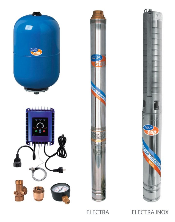 Domácí vodárny s ponorným čerpadlem ELECTRA nebo ELECTRA INOX. Frekvenční měnič chrání čerpadlo před přehřátím, chodem nasucho a zajišťuje konstantní tlak.